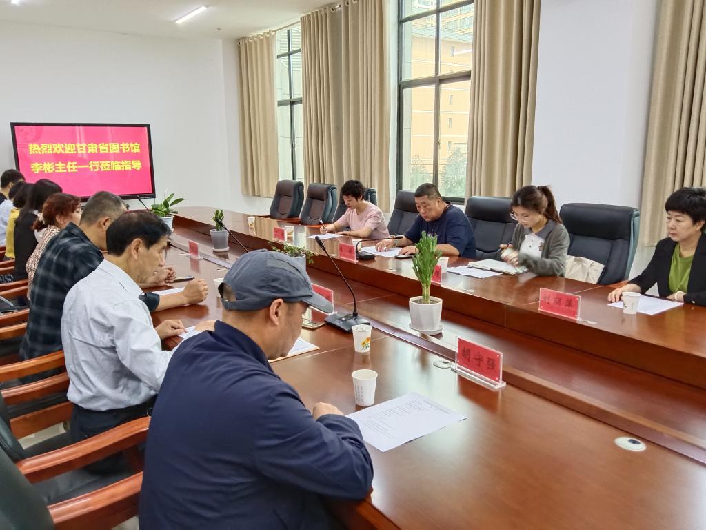 6月8日上午,甘肃省图书馆典阅部主任李彬一行来校进行甘肃省图书馆陇南师专分馆建设运行情况调研。陇南市图书馆流通部主任刘丽萍、陇南市图书馆共享工程中心主任罗婕陪同调研,成县图书馆馆长郝晓霞、副馆长胡守强,beat365图书馆班子成员、各部室主任及职工代表参加调研。
