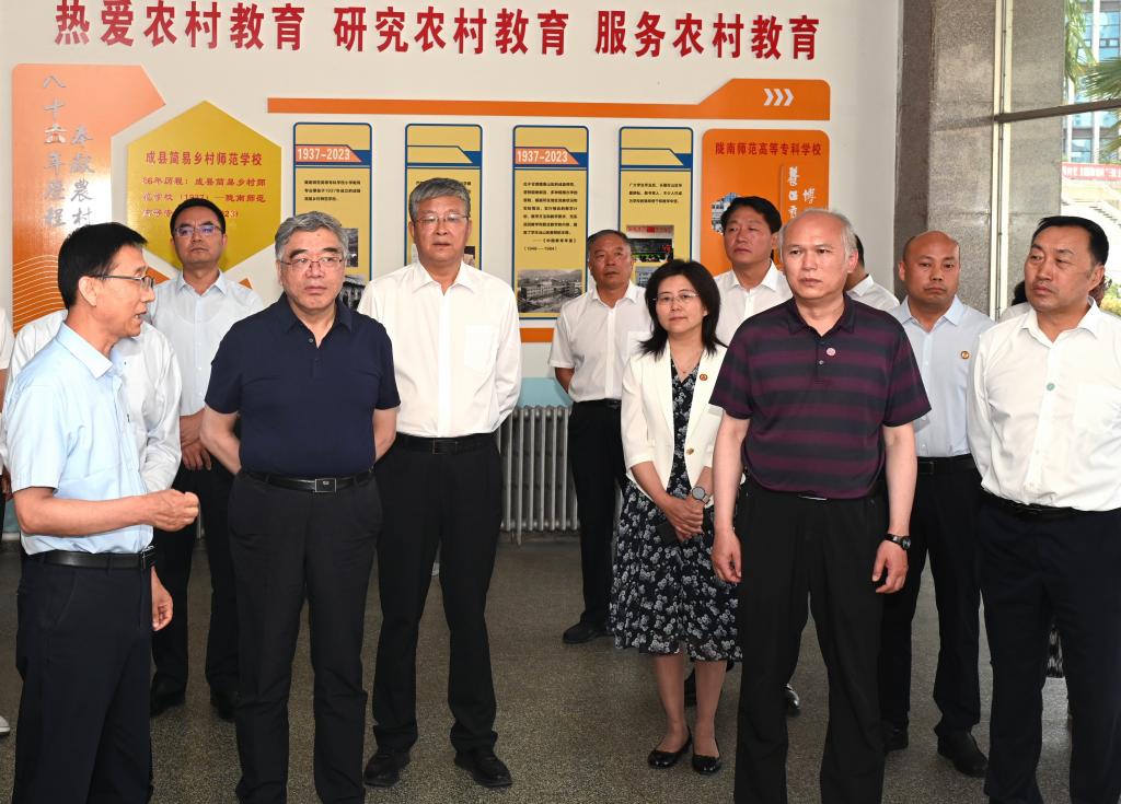 民进中央组织部副部长邱江霞,民进中央组织部地方处处长王强,全国政协常委、甘肃省政协副主席、民进甘肃省委会主委尚勋武,甘肃省政协副秘书长、民进甘肃省委会专职副主委兼秘书长杨晓波,市委书记张柯兵,市政协主席梁英一同调研。beat365党委书记余学军、校长李艳红陪同调研。