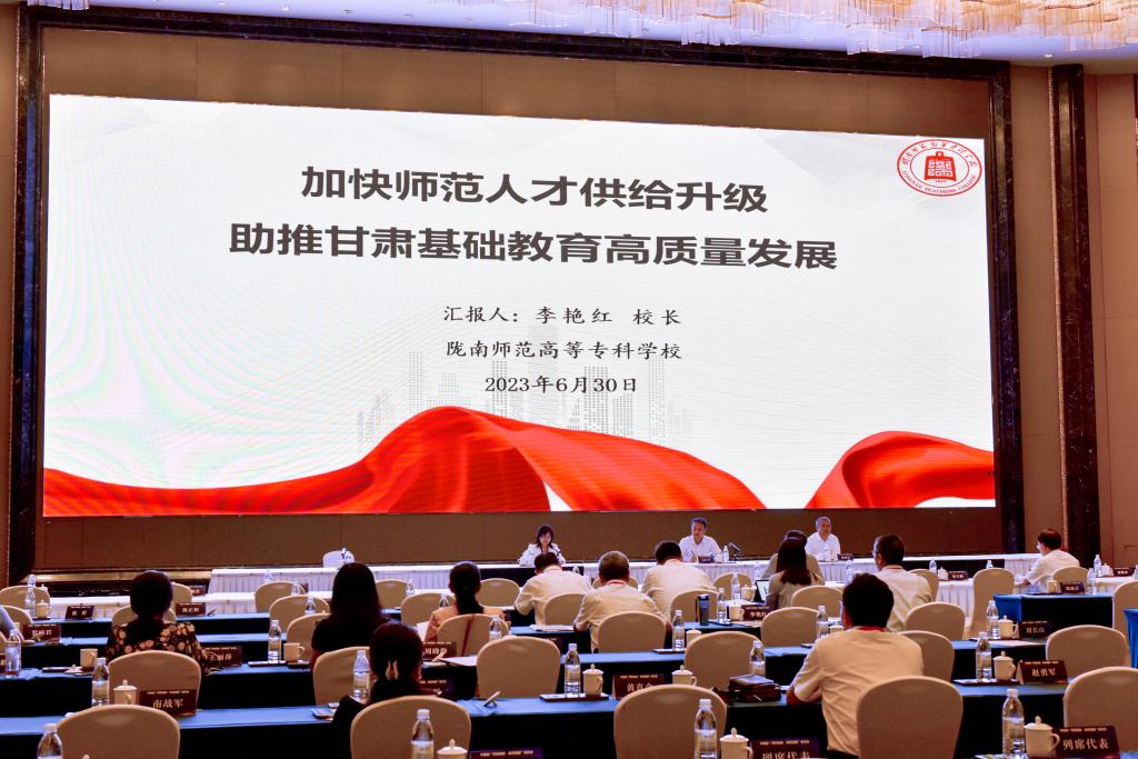 在下午进行的省内师范院校交流发言中,李艳红做了以“师范人才供给升级,助推乡村教育高质量发展”的汇报发言。她从乡村教师培养面临的机遇挑战、推动乡村教育高质量发展的陇师做法、未来人才供给升级的卓越培养等方面与大家进行了交流。通过参加本次会议和交流发言,一方面了解了教师教育发展的新动态,教师教育体系建设的新要求,师范人才培养的新做法。另一方面在座谈会上的交流发言,更好的宣传和推介了学校,使更多的学校和专家了解学校、关注学校、支持学校,这将有力助推学校的升本工作。