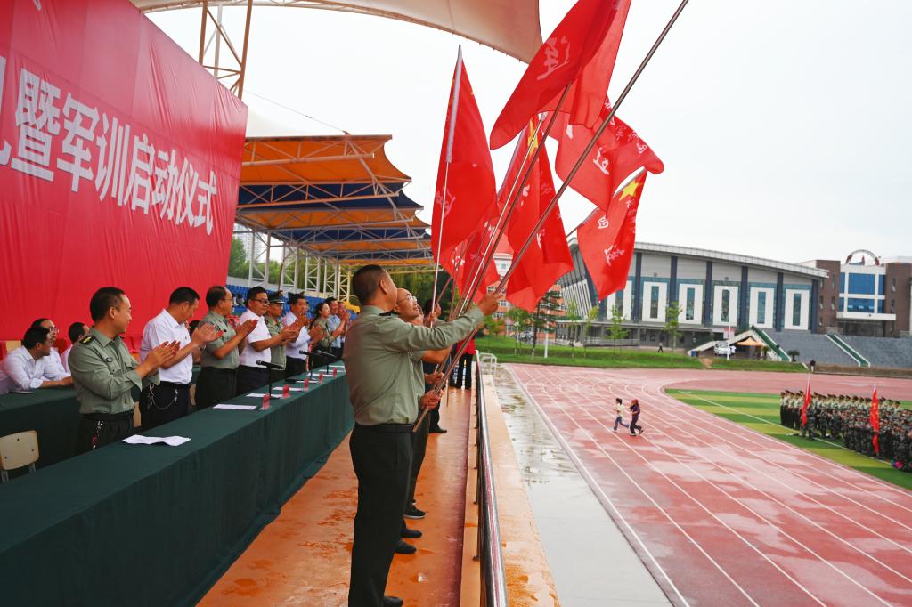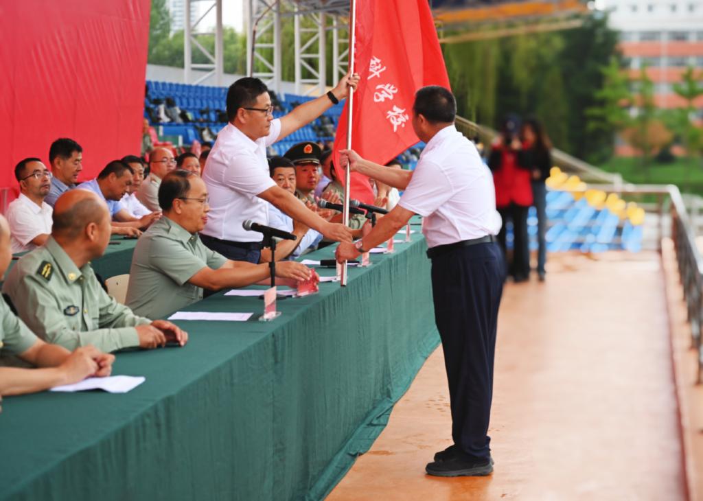 纪委书记、监察专员镡旭东为2023级新生军训团授旗