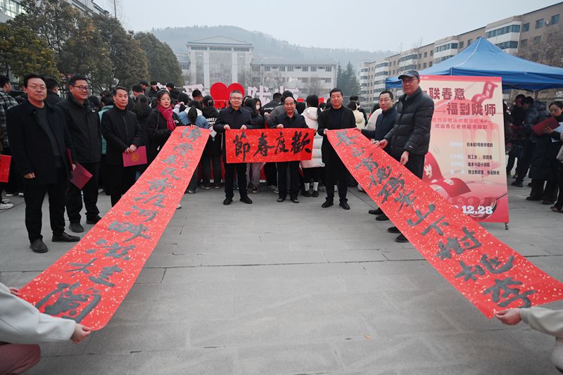 12月28日,学校举行“一联春意,福到陇师”弘扬传统节日赠对联活动。党委书记张弢,副校长张建辉、王胜青,纪委书记、监察专员镡旭东,工会、团委、美术与设计学院师生共计100余人参加了活动。副校长任永峰主持活动。