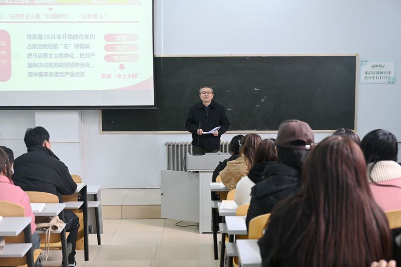 张弢指出,习近平新时代中国特色社会主义思想内涵丰富、博大精深,是我们认识世界、把握规律、追求真理、改造世界、做好各项工作、处理各种矛盾的强大思想武器和方法的根本遵循。思政课作为落实立德树人根本任务的关键课程,教师在授课时要注重方式方法,把道理讲深、讲透、讲活,既要寓马克思主义“道理”于“学理”,又要贯通“思政小课堂”与“社会大课堂”,在彰显中国之路、中国之治、中国之理中,引导学生懂政理、明学理、通事理。他希望同学们要坚定理想信念,吃苦耐劳,朝夕勤奋,兼善求达,认真学习校史校情,继承和发扬学校的优良传统,自觉担当民族复兴的时代大任,为国家建设贡献青春力量。(文图/