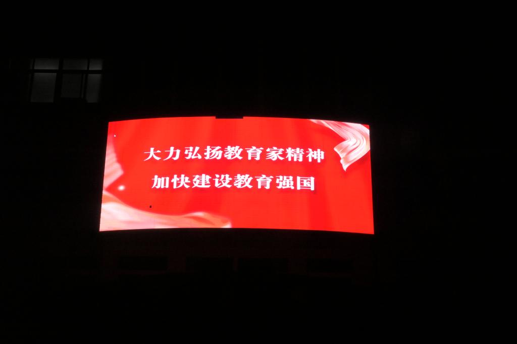 活动中,学校学术中心、育心楼的LED电子大屏以字幕滚动方式播放了“大力弘扬教育家精神,加快建设教育强国”“老师,您好!”“教师节快乐!”“老师,您辛苦了!”的字样及图片,表达了对老师的崇高敬意和真诚祝福,为教师节营造了浓浓的节日氛围。