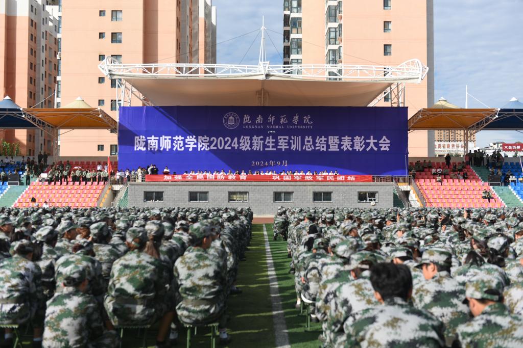 9月21日,学校召开了2024级学生军训总结暨表彰大会。校长李艳红,纪委书记、监察专员镡旭东,副校长何新征、李杰,党委委员马馥芸、张益斌,武警陇南支队执勤三大队少校大队长牟晓辉,各处室负责人,各学院党总支书记、院长、分管学生工作领导出席大会。辅导员,班主任及2024级全体新生参加了大会。大会由党委副书记石明主持。