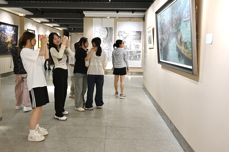本次展览由党委宣传统战部、工会、美术与设计学院联合主办。(文图/强雨萱)