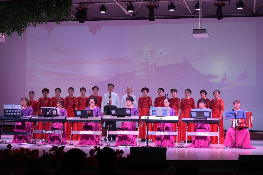 演出在大合唱《在太行山上》《祖国不会忘记》中拉开帷幕,笛子齐奏《牧民新歌》、民乐合奏《花儿与少年》、男女二重唱《不忘初心》、藏族舞蹈《娥嫚》、诗朗诵《放歌重阳》、电子琴歌曲联奏、戏歌《人面桃花》、武术太极拳、舞蹈《我爱你中国》、男声独唱《最美不过夕阳红》、电吹管合奏《红歌连奏》、器乐弹唱《秋收》《洗衣歌》、武术太极剑、舞蹈《黄河水从我家门前过》等节目异彩纷呈,优美的舞姿、嘹亮的歌声、动听的器乐、声情并茂的演出,他们用自己的方式诠释着对生活的热爱,赢得了现场观众的阵阵掌声和喝彩声。