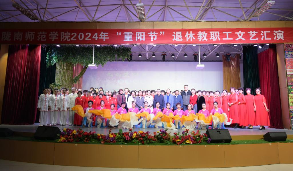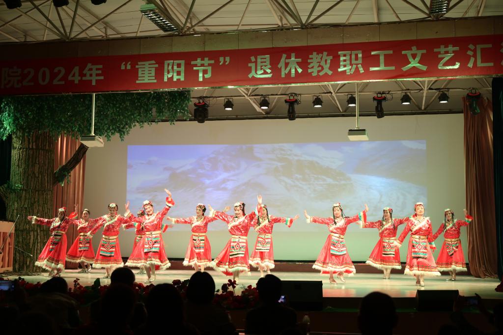10月11日晚,学校举行重阳节退休教职工文艺汇演。党委书记张弢、副校长李杰、党委委员马馥芸,退休教职工、在校师生代表等齐聚一堂,共同观看现场演出。