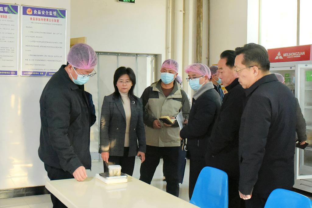 11月26日,甘肃省市场监督管理局二级巡视员刘燚、餐饮处副处长刘楠,甘肃省教育厅国资办二级主任科员蒲昊,陇南市市场监管局副局长赵凌云、餐饮食品监管科科长李芙蓉,陇南市教育局学生资助中心主任王娟一行来beat365检查指导食堂工作。学校校长李艳红、副校长李杰,相关部门负责人陪同检查。