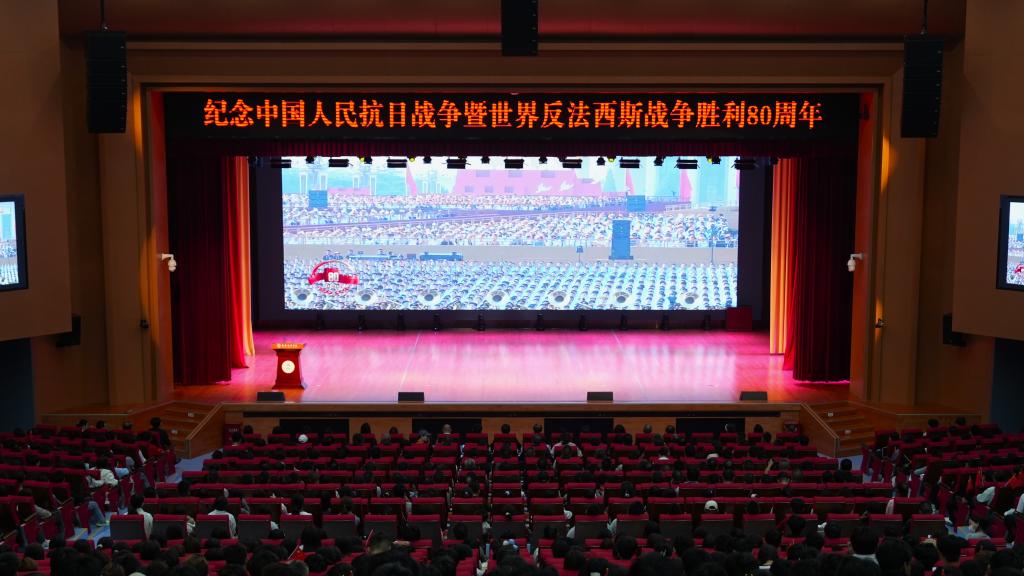 学校组织1200余名师生在大学生活动中心线上集体收看中国人民抗日战争暨世界反法西斯战争胜利80周年纪念大会现场直播。党委书记向君,党委副书记、校长李艳红及全体校领导与师生们静坐屏前,共同见证这一振奋人心、激荡民族自豪感的历史时刻。