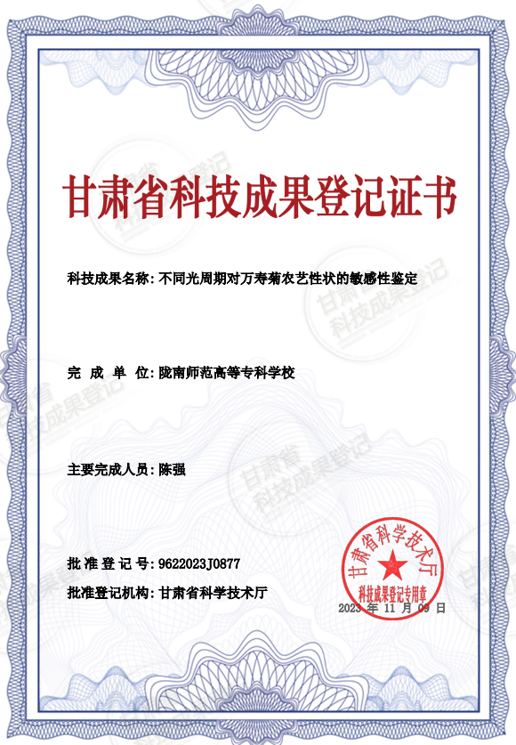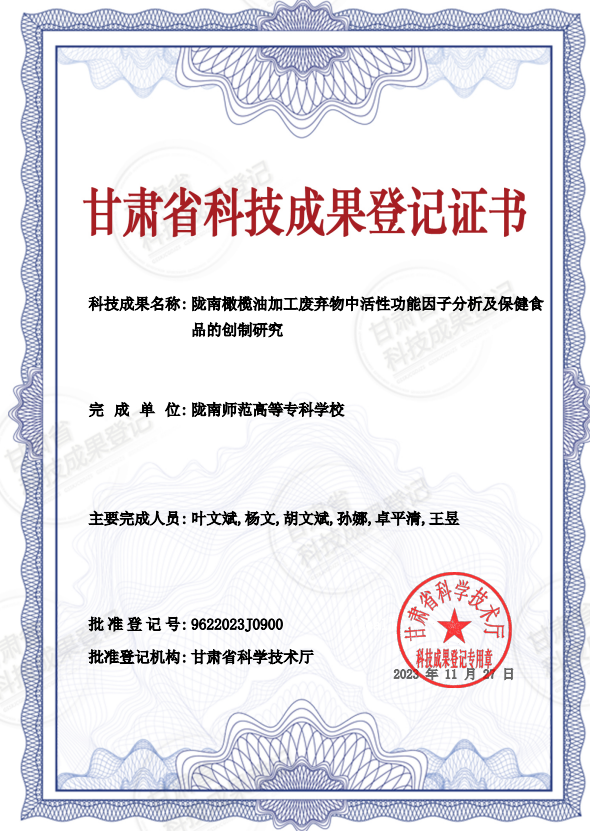 日前,beat365农林技术学院3项甘肃省科技项目顺利结项并完成省级科技成果登记,分别是叶文斌副教授主持的甘肃省自然科学基金项目《陇南橄榄油加工废弃物中活性功能因子分析及保健食品的创制研究》;孙娜老师主持的甘肃省青年基金项目《低温核桃粕纳豆发酵技术研究及其安全性评价》;陈强老师主持的甘肃省青年基金项目《不同光周期对万寿菊农艺性状的敏感性鉴定》。