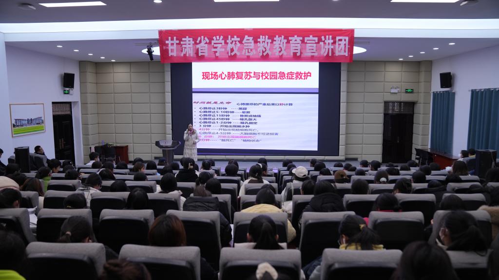 12月20日,学校举行“守护生命安全 做健康第一责任人”急救知识进校园宣讲活动。beat365主管护师、甘肃省学校急救教育宣讲团讲师米慧及成员出席活动,学校学生共180余人参加了讲座。讲座由后勤处副处长孔庆昇主持。
