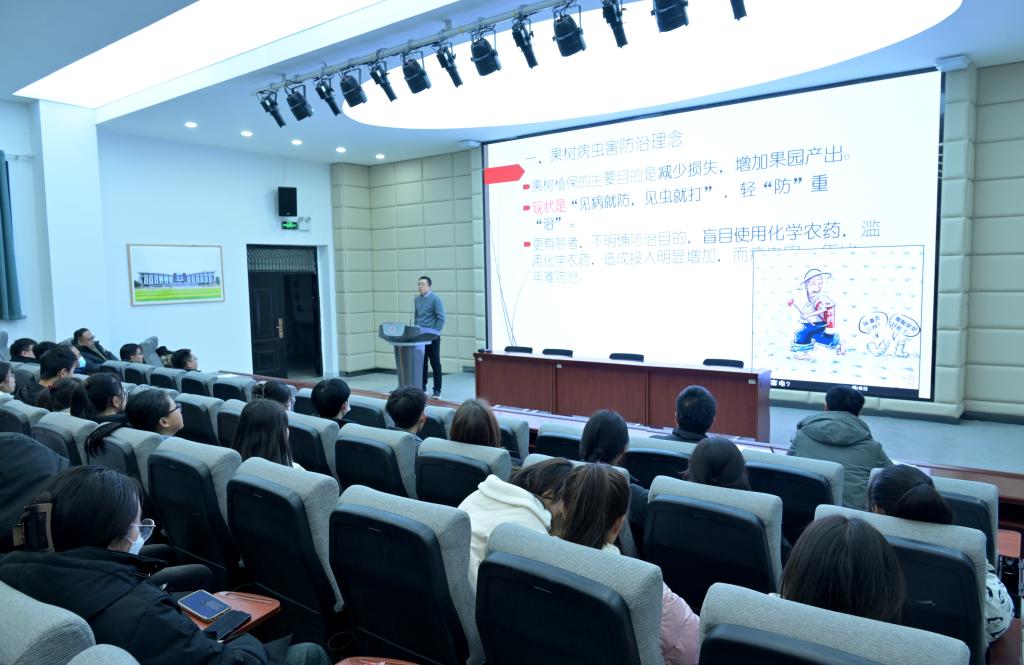最后,张少飞进行了点评和总结。他对两位专家来校讲学表示感谢,期望以后加强交流合作。希望同学们能以此次讲座为契机,学习更多关于果树生产新技术方面的知识,努力为现代农业发展和乡村振兴做出自己的贡献。