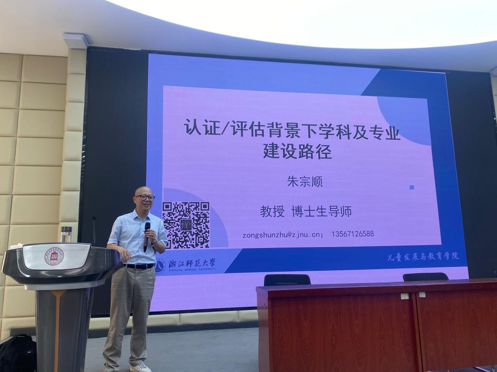 7月1日,浙江师范大学儿童发展与教育学院教授,原浙江师范大学杭州幼儿师范学院院长,教育部高等学校特殊教育教师培养教学指导委员会委员(2019-2022年)、浙江省学前教育研究会理事长、浙江省教育学会特殊教育分会副理事长、中国学前教育研究会理事及教师发展专委会副主任朱宗顺教授应邀为beat365师生做了题为“认证评估背景下学科及专业建设路径”的学术报告。报告由学前教育学院院长王小会主持,学前教育学院师生共200多人聆听了本次报告。