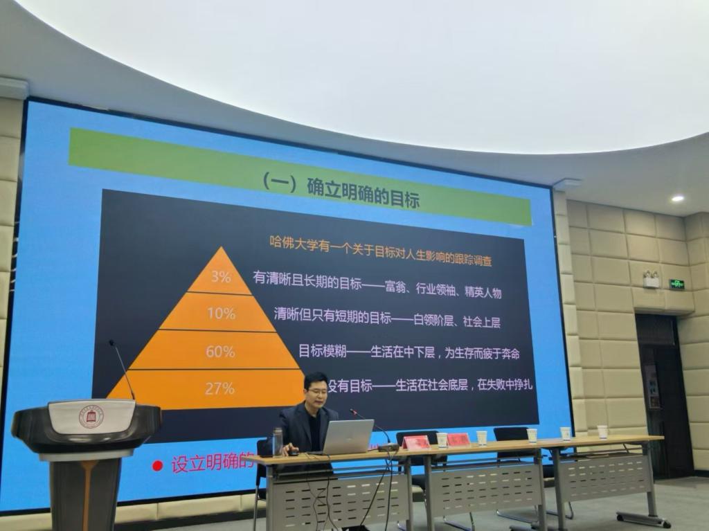 吴彦文教授以《如何让大学生活变得充实且有意义》的报告。报告从什么是大学、大学教育与中学教育的差别、优秀大学生的特质、如何让大学生活焕发光彩等四个方面问题向与会学生阐述了大学生如何度过充实有意义的大学生活。