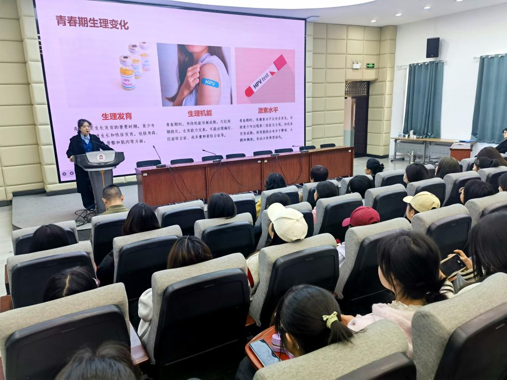 讲座中,刘丽荣以“营养饮食与体重管理”为主题,从科学饮食、合理运动等方面,深入浅出地讲解了如何通过健康的生活方式管理体重,保持良好的身体状态。张晓溪则围绕“青春期保健、HPV疫苗接种与性传播疾病的防治”展开,详细阐述了女性生理健康、心理健康以及常见疾病预防等多个方面的知识。在生理健康板块,她深入剖析了女性不同生理期的身体变化及保健要点,为女大学生们提供了专业的建议和指导,帮助她们正确应对经期不适。在心理健康方面,结合大学生常见的心理问题,分享了一系列实用的心理调适方法,鼓励女大学生们保持积极乐观的心态,勇敢面对生活中的挑战。针对妇科炎症等女性常见疾病,专家们详细介绍了疾病的成因、症状及预防措施,特别提醒同学们要养成定期体检的好习惯,做到早发现、早治疗。