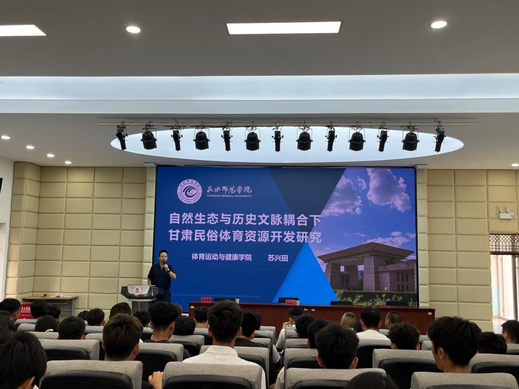报告会上,苏兴田从研究背景及意义、研究的理论依据、自然生态与历史文脉耦合、甘肃民俗体育资源归纳分类、甘肃民俗体育资源具有的禀赋特性、甘肃民俗体育资源开发的路径和甘肃民俗体育资源开发面临的挑战与可持续发展对策等八个方面进行了系统分享,对地方民俗体育研究提出了一些具有指导性的建议和意见。学术报告会内容丰富、观点新颖,师生受益匪浅。