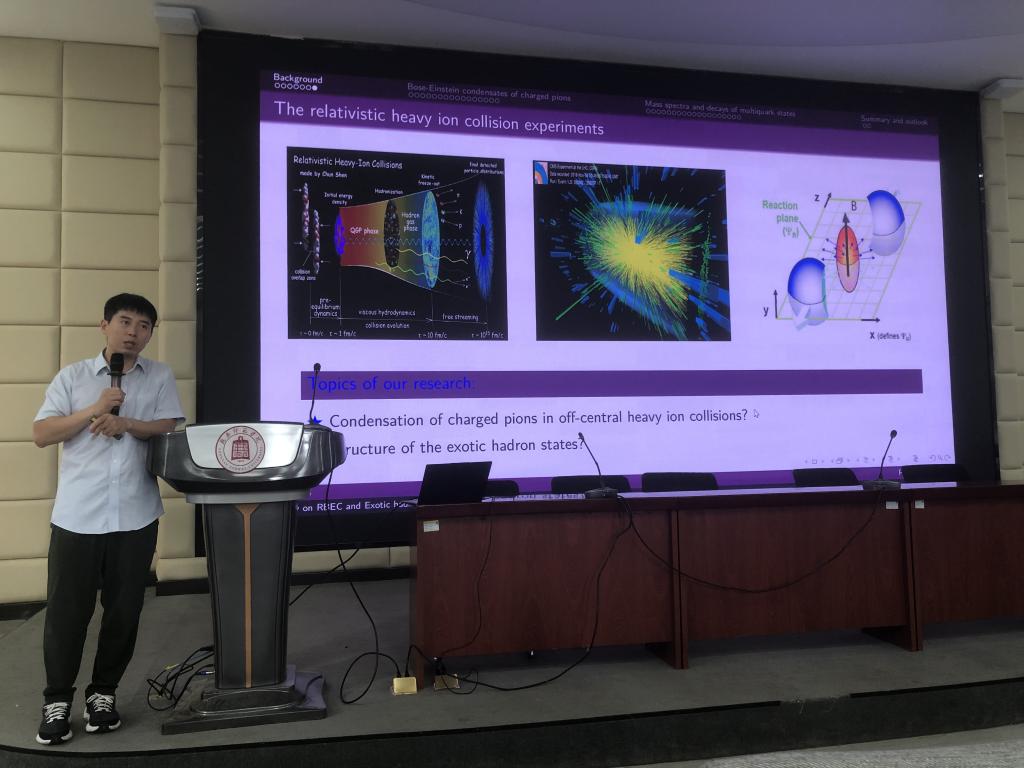 报告以宏大的宇宙视角切入,指出除了神秘的暗物质和暗能量,理解夸克与胶子如何结合形成各种强子,是探索物质世界最深层结构、揭示宇宙物质本源的关键。他结合聚焦强子物理研究前沿,深入浅出地分享了其团队在特殊环境下的玻色-爱因斯坦凝聚和奇特强子态的探索的重要研究进展,阐述了寻找和确认四夸克态面临的理论与实验挑战,以及这些奇特强子态如何丰富和挑战我们对强相互作用力及物质基本构成单元的理解。
