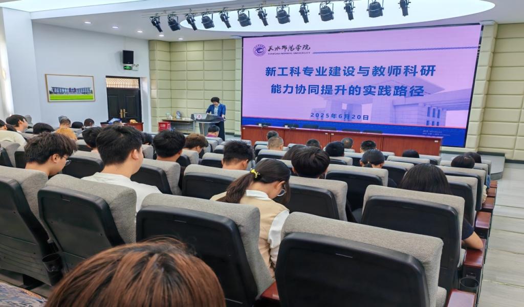 6月21日早晨,天水师范学院杨静教授应邀为机电工程学院师生作了题为“新工科专业建设与教师科研能力协同提升的实践路径”的学术报告。报告会由机电工程学院院长赵卫红主持,全院师生190余人参加。