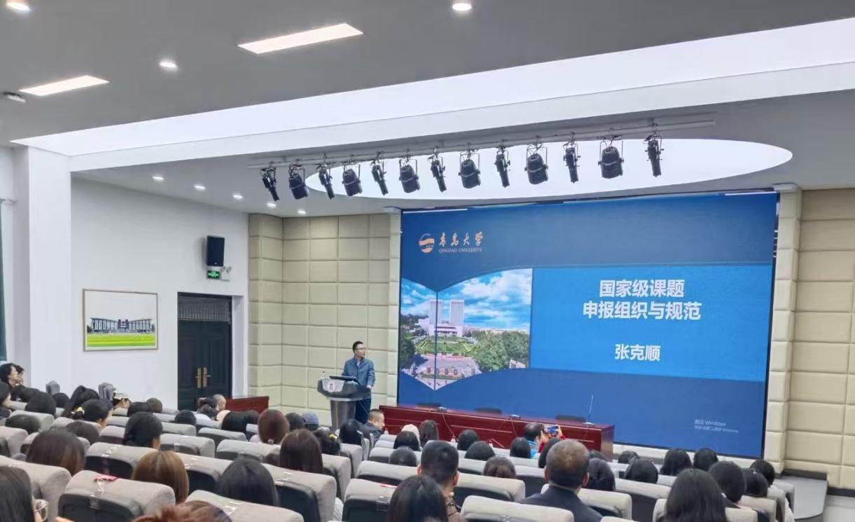 报告中,张克顺围绕项目选题、研究设计、细节把控三个核心维度展开深入讲解,系统分享了国家级课题申报的实战经验。报告深入浅出,广征博引,从申报者和评审专家双重视角为师生提供了理论和实践指引。