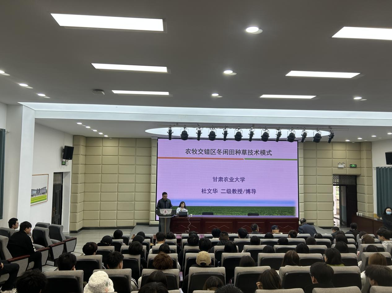 11月7日上午,甘肃农业大学草业学院杜文华教授应邀来校,在科技楼109学术报告厅作了题为“农牧交错区冬闲田植物种质资源及高效种植技术”的专题学术报告。农林技术学院植物学和农学学科相关专业师生150余人聆听了报告。