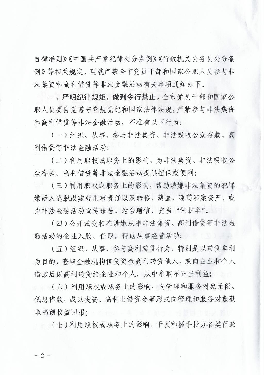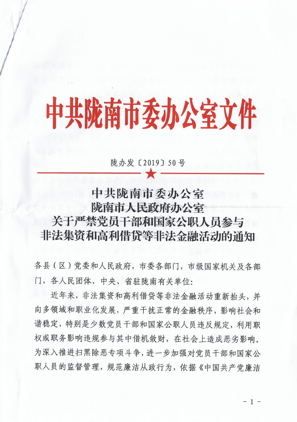 现将《中共陇南市委办公室陇南市人民政府办公室关于严禁党员干部和国家公职人员参与非法集资和高利借贷等非法金融活动的通知》全文转发,请按照要求组织干部职工对照“十种行为”认真开展自查自纠,并将自查自纠结果于2019年6月20日下午5点前报校纪检办。