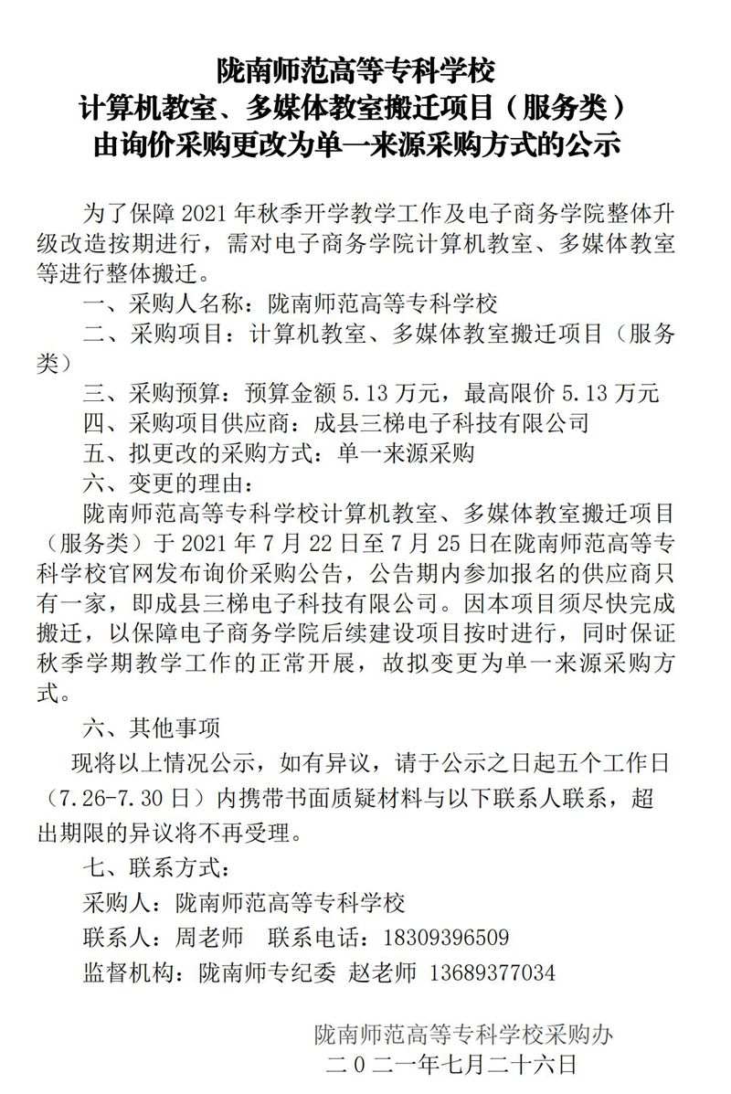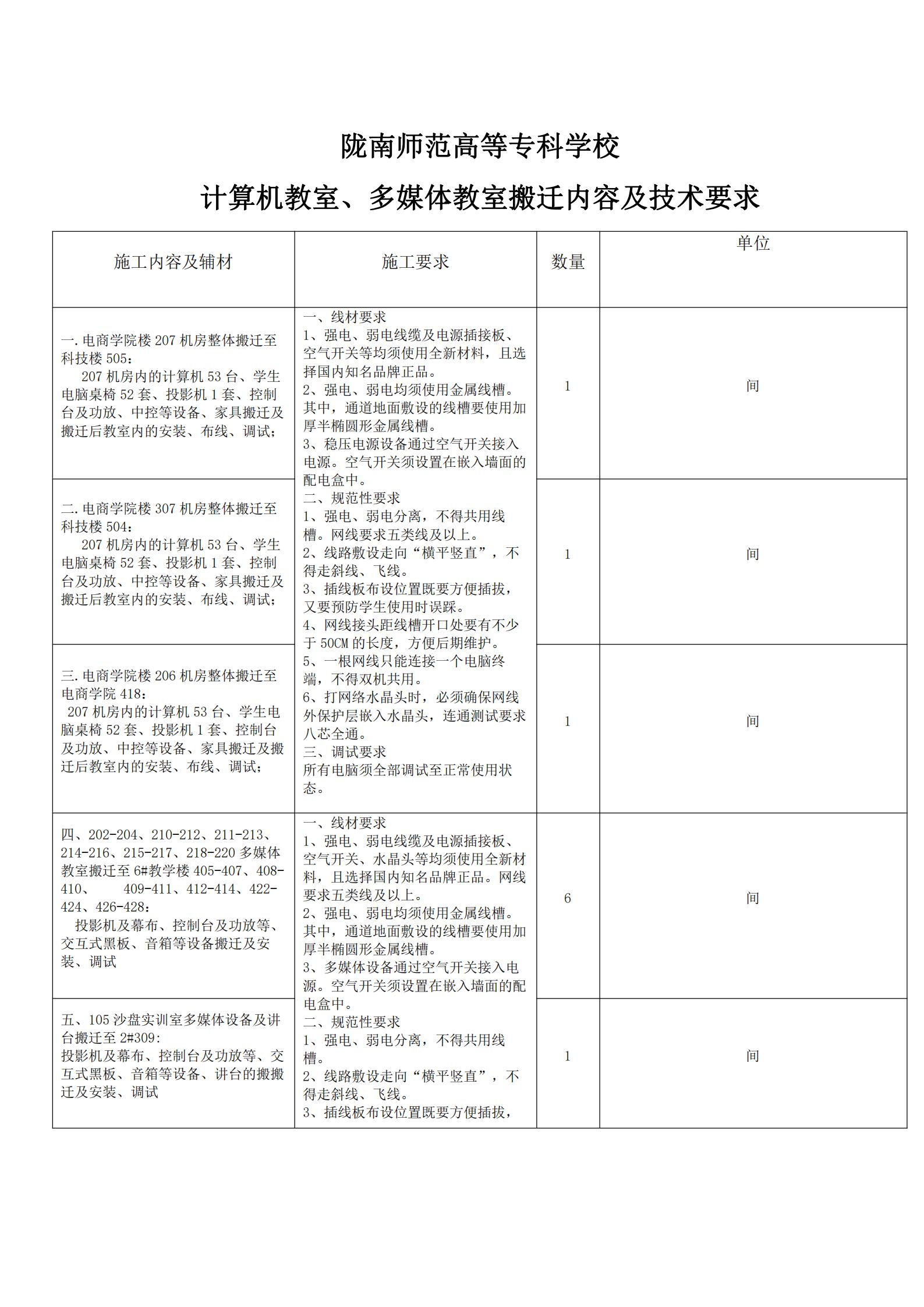 下一条:陇南师范高等专科学校计算机教室、多媒体教室搬迁项目(服务类)询价采购公告