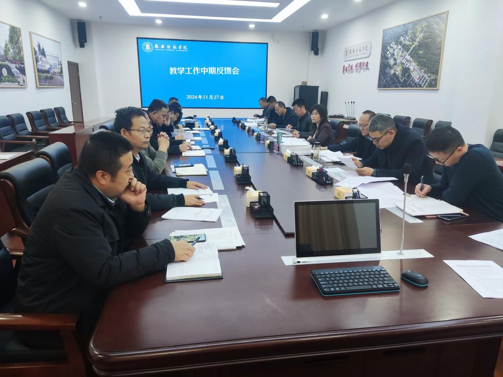 11月27日,学校召开了2024年秋季学期教学工作中期反馈会,校长李艳红,各学院教学院长,教务处、质评中心全体人员参加了会议,会议由副校长何新征主持。