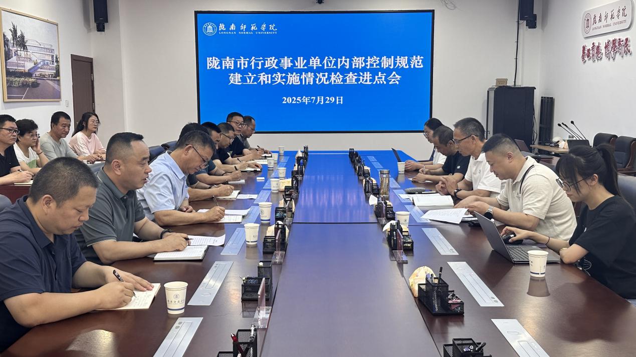 上午,在学校第一会议室召开内部控制规范建立和实施情况检查进点会。陇南市财政局检查组组长尚耀军主持会议并宣布正式进驻学校开展检查工作,并介绍了检查组成员。检查组成员畅亮向参会人员出示了《行政执法证》,同时宣读了陇南市财会监督检查工作纪律要求以及被检查单位的权力和义务。第三方机构人员在会上反馈了线上核查的相关情况。