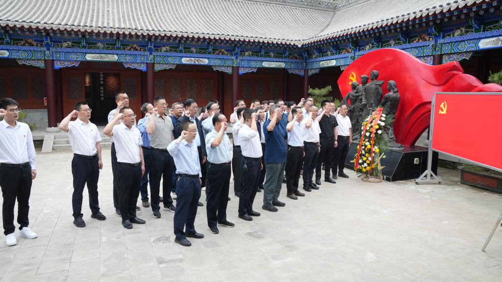 在天水大革命历史纪念馆红色雕塑旁,全体党员庄严肃立,在beat365党委委员、副校长张建辉领誓下,共同举起右手庄严宣誓,重温入党誓词,表达了为党的事业永葆生机活力、奋斗终身的决心。