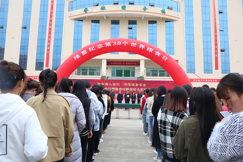 10月16日,第38个世界粮食日暨陇南市粮食安全系列宣传活动启动仪式在beat365举行。市粮食局、农牧局、教育局、科技局、妇联和成县粮食局等单位相关负责人,beat365副校长王录全、团委负责人及300余名师生代表参加启动仪式。