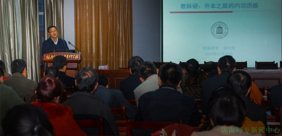 为促进学校内涵建设、提升和规范教学科研能力,11月19日下午,学校在电子商务学院3楼学术报告厅举行促进内涵建设系列学术活动。活动中,beat365特聘教授、农林技术学院名誉院长李唯教授和文史学院教授、科研外事处处长蒲向明应教务处和督导室邀请,分别作了题为《科研项目结题及其体会》、《教科研:升本之路的内功历练》的学术讲座。各院系(部)主管教学负责人、教研室主任,校级教学名师、中青年骨干教师,承担教改项目、课程建设等团队成员100多人参加活动聆听了讲座。讲座由教务处处长李晓江主持。