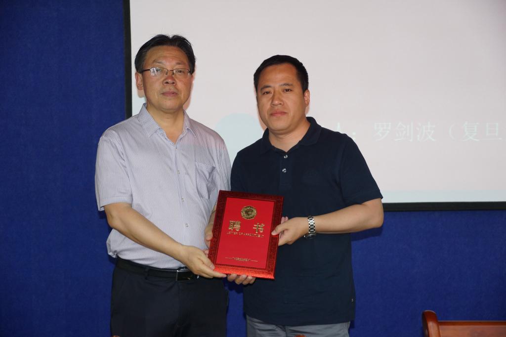 副校长王胜青教授向罗剑波教授颁发客座教授聘书