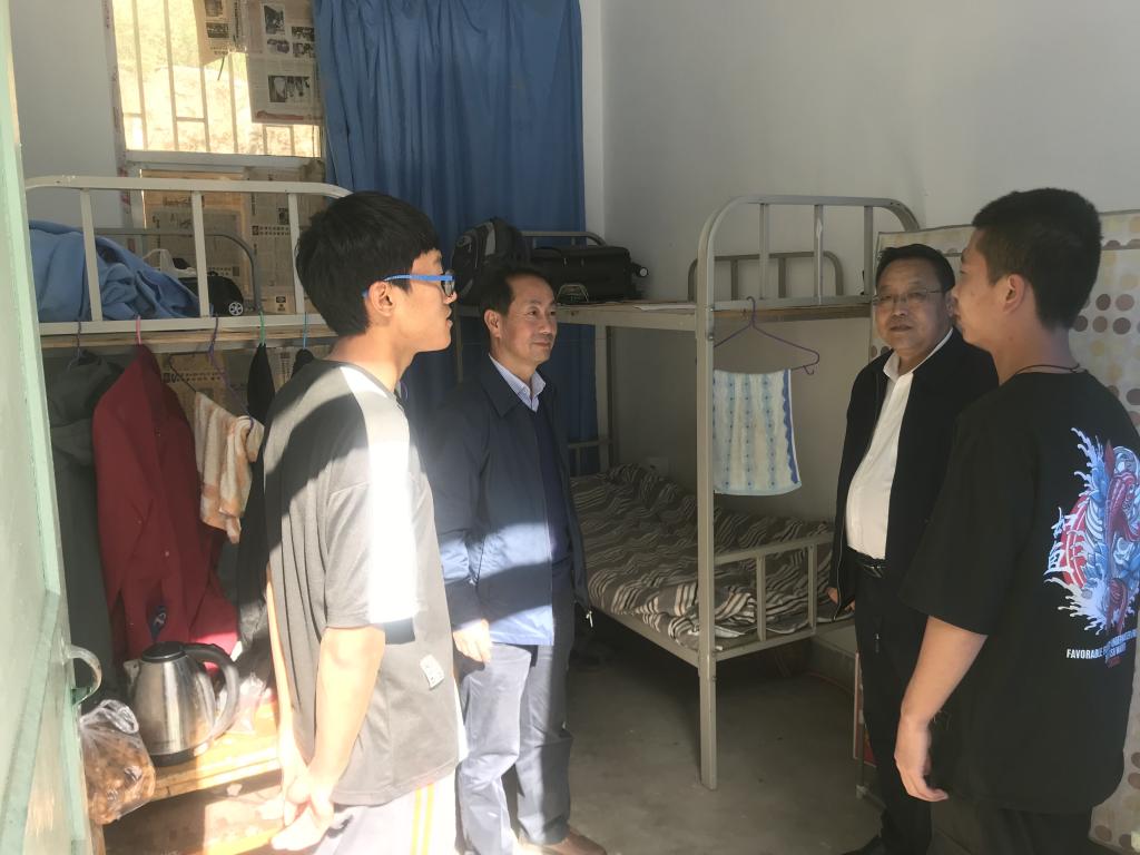 随后,张建辉看望慰问了在沙坝小学支教的学生。他走进支教实习生宿舍,查看床铺、灶具等生活用具,给他们送去了大米、食用油等生活用品。张建辉勉励实习生珍惜了解国情民生、锻炼自己的好机会,牢记学校嘱托,努力工作,虚心学习,提升能力,高质量完成本次支教实习工作,给学校交上一份满意的答卷。