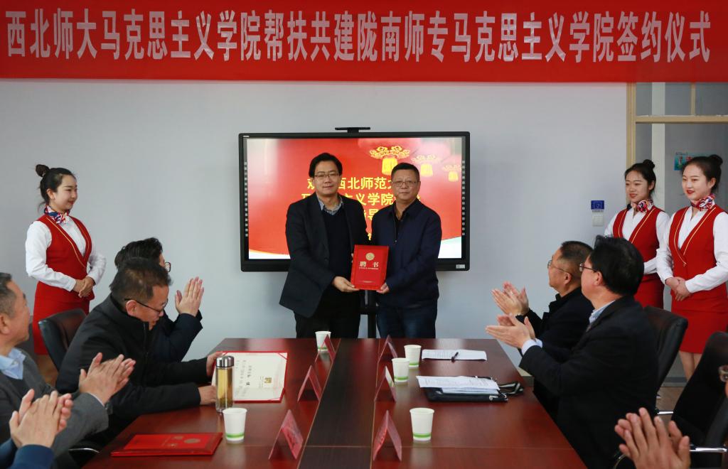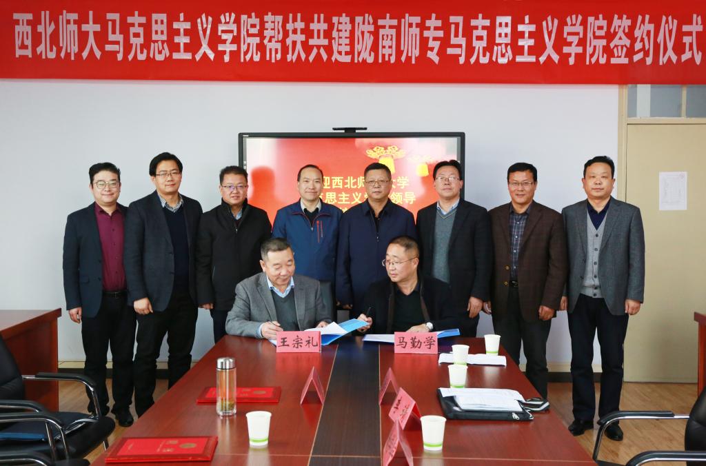 王宗礼、马勤学代表两校马院签订了帮扶共建协议。