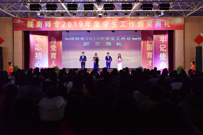 12月20日下午,学校2019年学生工作总结暨颁奖典礼在北校区礼堂举行。党委副书记王莹成,副校长张建辉、任永峰、王胜青、王录全、张勇,纪委书记、监察专员镡旭东,各学院、处室负责人,分管学生工作领导,全体辅导员、学生代表共400多人参加了典礼。