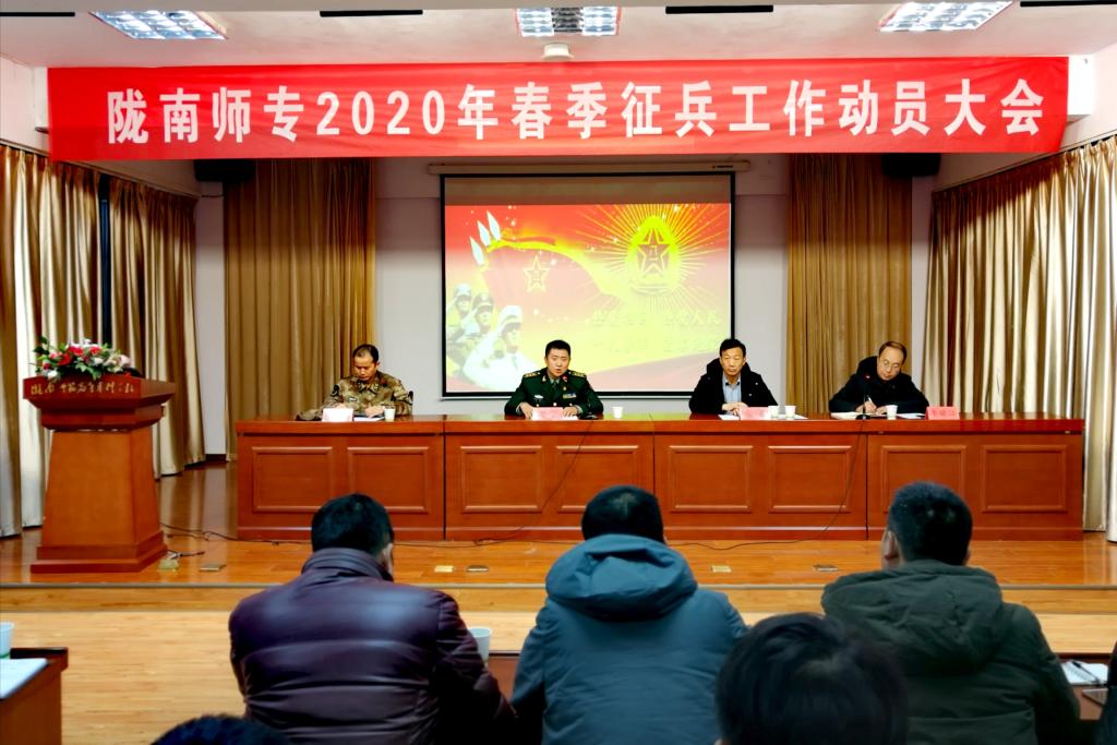 1月9日下午,beat3652020年春季征兵工作动员大会在电子商务学院三楼报告厅召开,成县人武部政委姚宏、副部长李国峰,副校长张勇,学生处处长李晓江,各学院征兵工作负责人和有参军意愿学生约200人参加了动员大会,会议由李晓江主持。