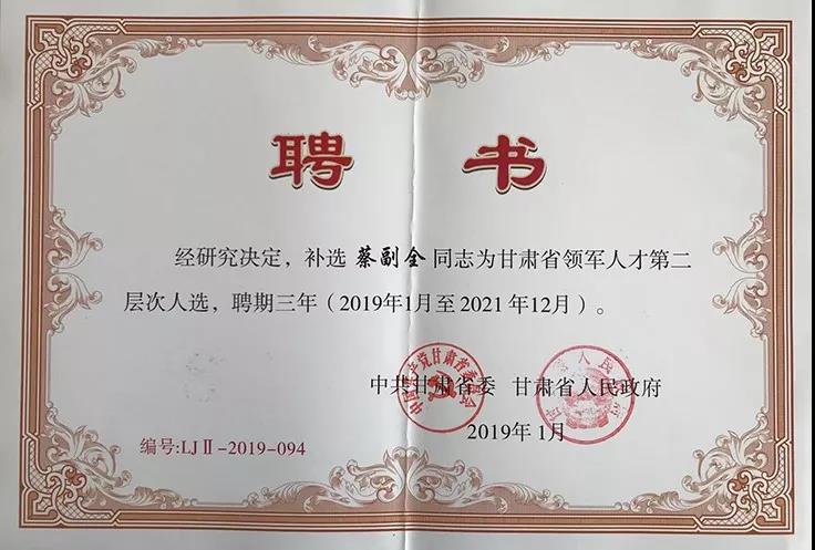 beat365蔡副全教授入选甘肃省领军人才,实现了beat365省级领军人才零的突破。