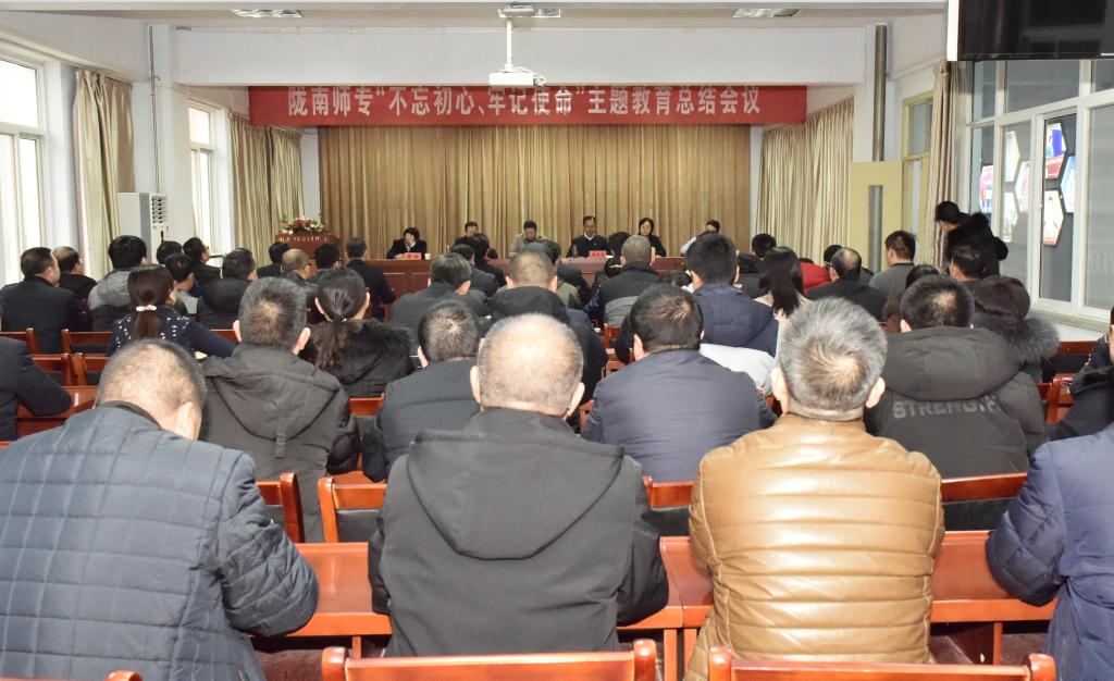 1月14日,学校召开“不忘初心、牢记使命”主题教育总结会议,贯彻落实习近平总书记在全国主题教育总结大会上的讲话精神,系统总结学校主题教育工作,持续巩固和深化主题教育成果,落实“不忘初心、牢记使命”主题教育制度,凝聚推动学校改革发展的强大动力。