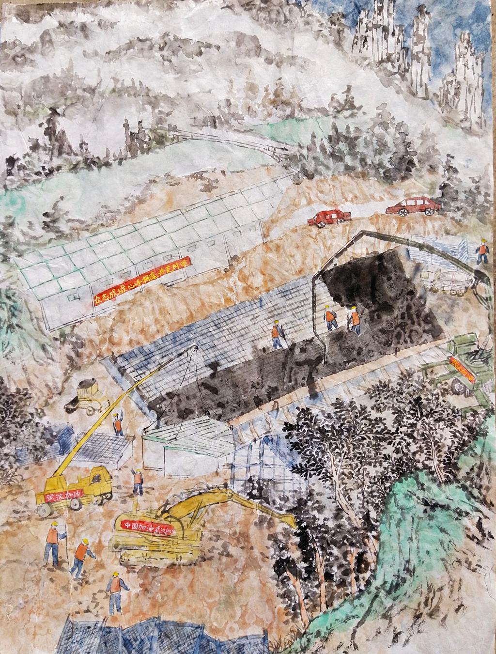 美术与设计学院贾彤辉同学说:“疫情发生后,我们学院许多同学主动请战,在家乡做防控志愿者。他们在行动,我们也不能落后,我们要用这种形式为疫情防控加油鼓劲。”