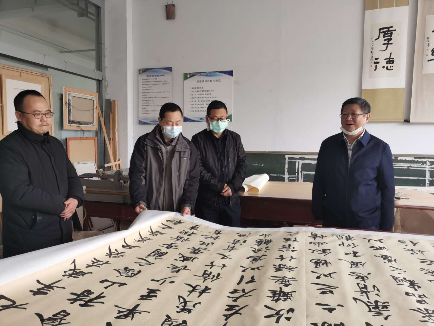 3月10日,党委书记余学军,纪委书记、监察专员镡旭东在三号教学楼检查疫情防控工作时,与正在画室创作抗疫作品的美术与设计学院姚文辉老师进行了亲切交谈。