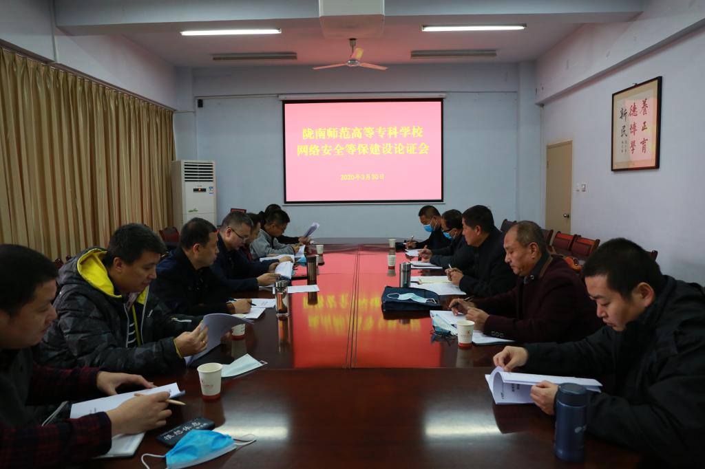 3月30日下午,学校召开网络安全等保建设论证会。兰州大学网络安全与信息办公室主任陈文波、副主任李善玺,兰州财经大学信息中心副主任李嵩华,兰州大学网络安全与信息办公室科长吴斌、蒋海洋,赛尔网络有限公司甘肃总经理王伟、副总经理温龙泉,浙江正元智慧科技股份有限公司总经理吴皆,beat365副校长任永峰,信息技术教育中心负责人及相关人员参加了会议。会议由任永峰主持。