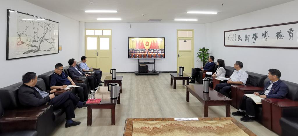 此次校领导集体收看十三届全国人大三次会议开幕会电视直播是今年党委理论学习中心组第四次集体学习。(宣传统战部)