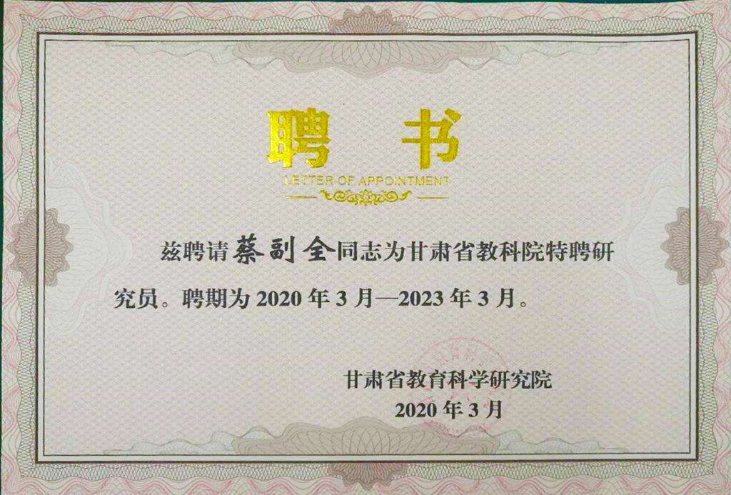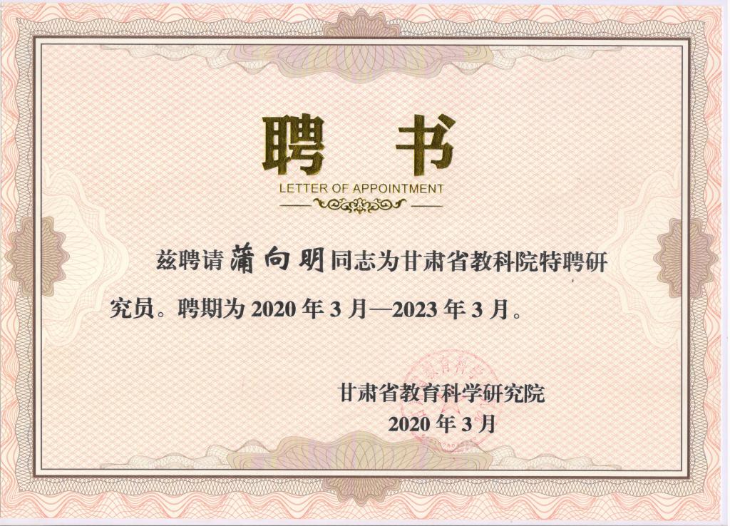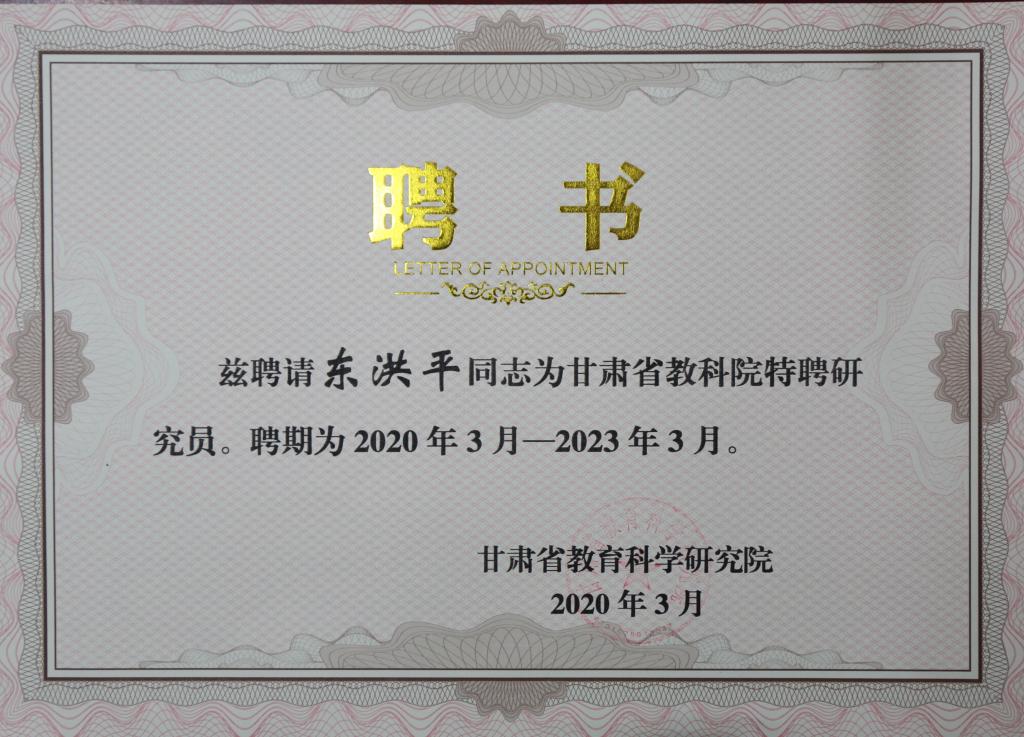 日前,甘肃省教育科学研究院下发《关于公布甘肃省教科院特聘研究员、特聘教研员名单的通知》(甘教研发[2020]17号),beat365蒲向明、蔡副全、张益琴、东洪平等四位教授入选甘肃省教育科学研究院特聘研究员。