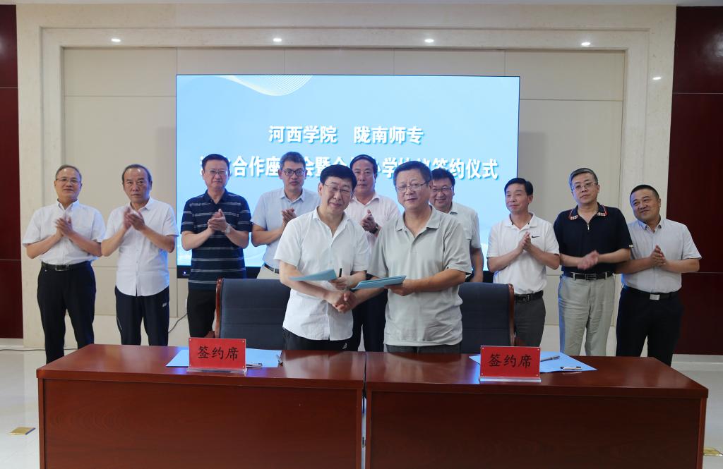 张汉燚、余学军代表两校签订了《河西学院-陇南师范高等专科学校合作办学协议》,双方一致表示将进一步加强交流,深化合作,将协议内容尽快转化为实际成果,把两校合作做实做细。