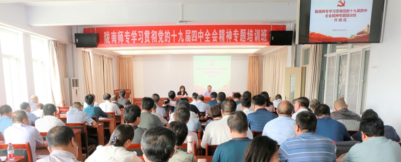 开班仪式结束后,天水师范学院党委常委、副校长王文东应邀以“学习十九届四中全会精神,加快推进学校高质量发展”为题,为全体培训学员讲授了开班第一课。
