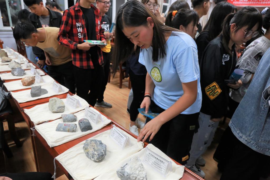 学生参观部分矿物以及岩石标本