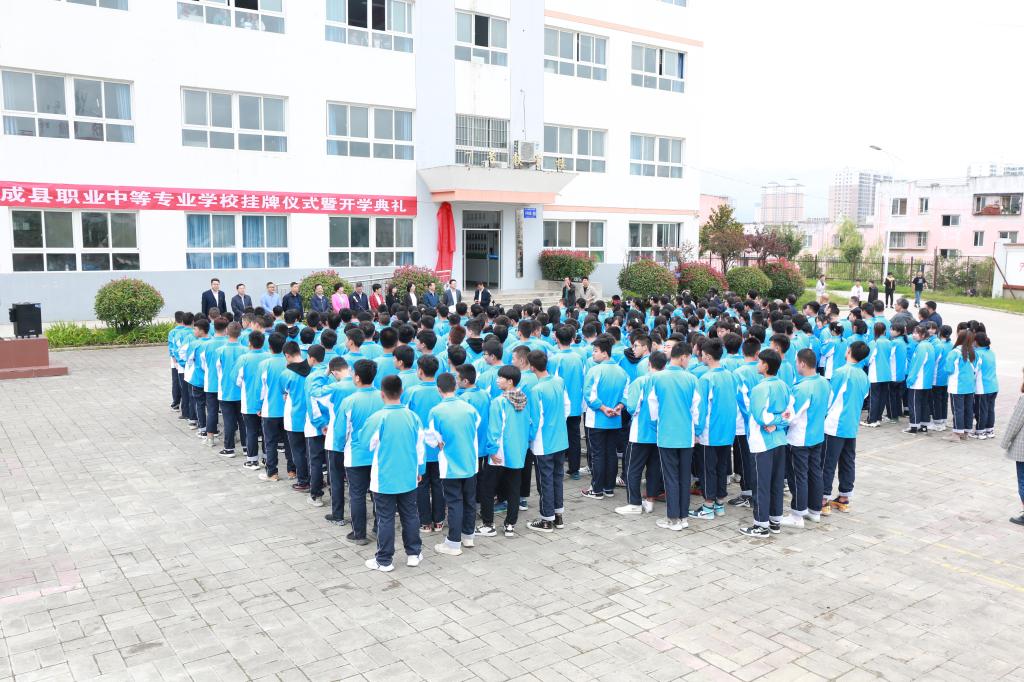 9月23日,成县职业中专依托beat365恢复招生办学暨挂牌仪式在东校区举行,陇南市教育局副局长屈兑梅,成县县委常委、宣传部部长周华,成县副县长李丽、教育局局长李小山,beat365党委书记余学军、校长李艳红、党委副书记王莹成和副校长张建辉、任永峰、王胜青,纪委书记、监察委员镡旭东出席仪式,副校长张勇主持仪式。