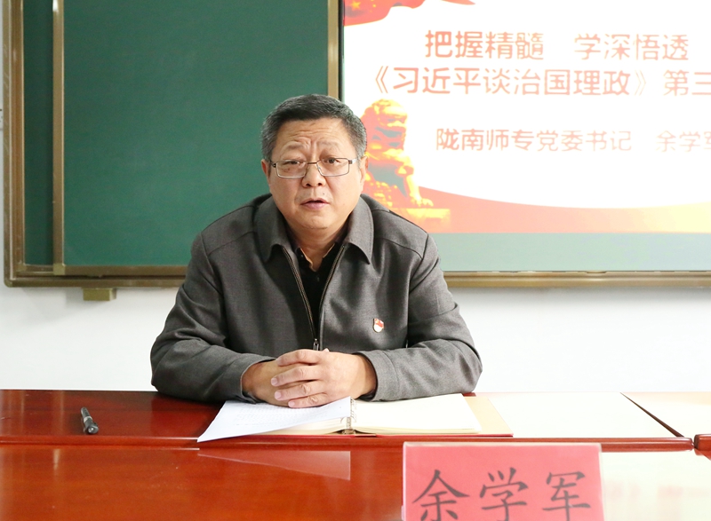 在讲授过程中,余学军从了解历史背景把握实践基础、深入学习领会读懂核心要义、掌握工作方法提高能力本领三个方面进行了阐释。他还围绕学习贯彻习近平新时代中国特色社会主义思想,带领大家重温党的基本理论知识,并结合beat365马克思主义学院师资队伍建设、甘肃省思政课马勤学名师工作室建设和甘肃红色文化融入思政课教学等方面做了深入浅出的讲解,教育全体党员干部要铭记中国共产党从哪里出发、为了什么出发,牢固树立“四个意识”,坚决落实“两个维护”,发挥党组织的战斗堡垒作用和党员干部的先锋模范作用,积极担当作为、勇于奉献,为培养能够担当民族复兴大任的时代新人做出更大的贡献。
