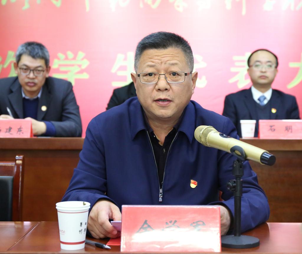 余学军对学代会的召开表示祝贺,并向与会代表及全校学生致以亲切的问候和良好的祝愿。他指出,在全校上下深入学习贯彻党的十九届五中全会精神之际,这次学代会的召开是全校学生的大事和喜事,希望学校各级学生会组织加强思想引领,坚定理想信念,深入学习习近平新时代中国特色社会主义思想,引导广大青年学生把坚定的理想信念作为奋斗的“指路明灯”,引导广大青年学生把艰苦的奋斗精神作为青春的“亮丽底色”,引导广大青年学生把高尚的道德品格作为一生的“不变诺言”,引导广大青年学生把勇于创新创造作为青春的“远航动力”。他希望,在学校党委和上级团学组织的正确领导下,全校各级学生组织、全体学生要以本次学代会为新起点,在服务学生成长成才、推进学校快速发展的生动实践中创造新业绩、展现新风采,在实现中华民族伟大复兴中国梦的新长征中奏响恢宏壮丽的青春乐章!