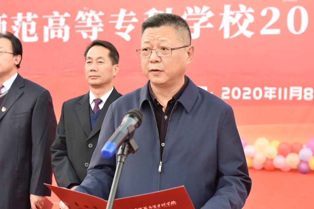 启动仪式上,余学军致辞。他指出,学校坚持“举师范旗、走应用路、创特色牌”的办学思路,守正创新、砥砺前行,已初步形成了以教师教育为特色、以服务地方经济发展需求为导向的专业建设思路,打造了以农村卓越小学教师和学前教师培养为主体,以农村电商、乡村旅游、农林技术等人才培养为侧翼的人才培养格局。学校高度重视职业技能教育,持续深化1+x培养模式,小学教育专业接受了教育部专业认证专家组进校考察评估,全校师生在各项学科竞赛和技能比赛中屡创佳绩。他强调,学校作为一所地方性师范院校,我们要做到师职并重,坚持以“学生为中心”,努力搭建各种平台,为学生提供表现自我的机会。随后,他宣布学校2020年职业教育活动周启动。